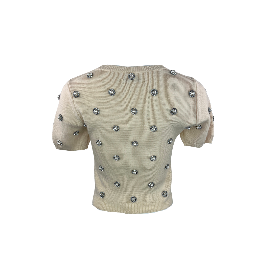Alice and Olivia Cropped Short Sleeve Cream Sweater with Crystals