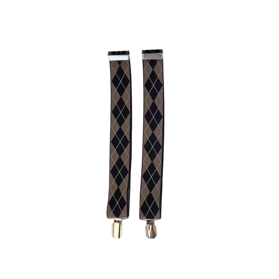Black and Brown Argyle Suspenders