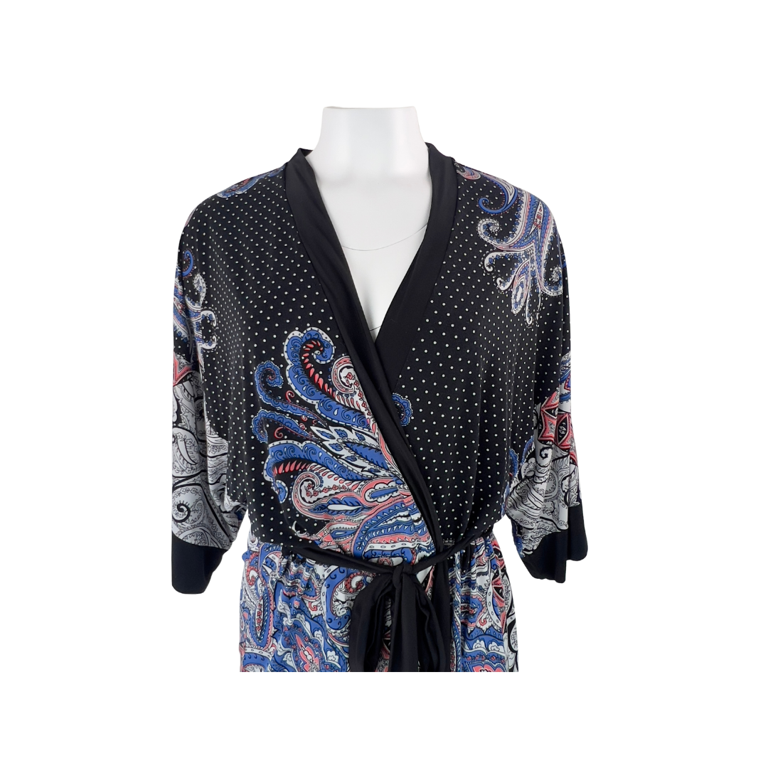 Black Stretch Jersey Robe with Paisley Print