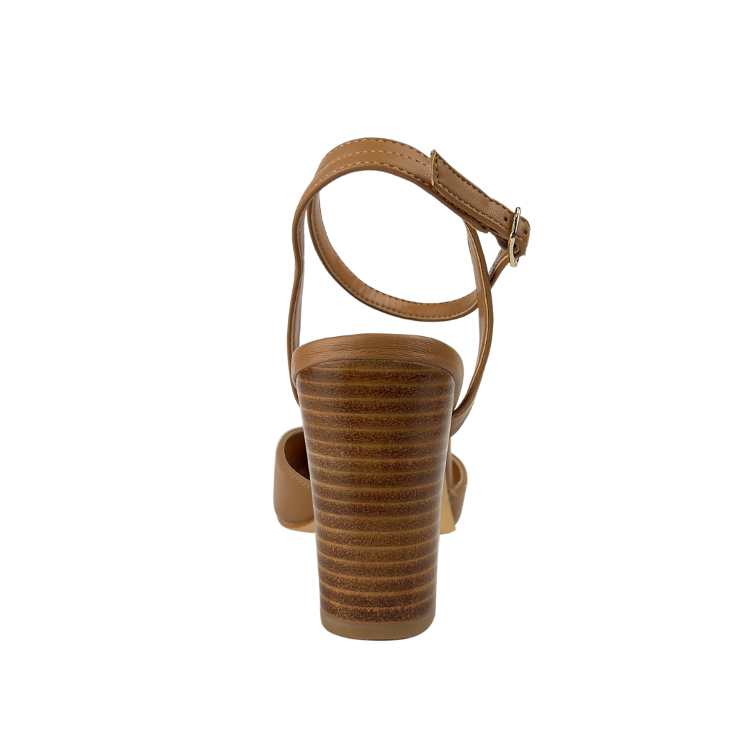 Le Chateau Brown Leather Block Heels with Ankle Strap