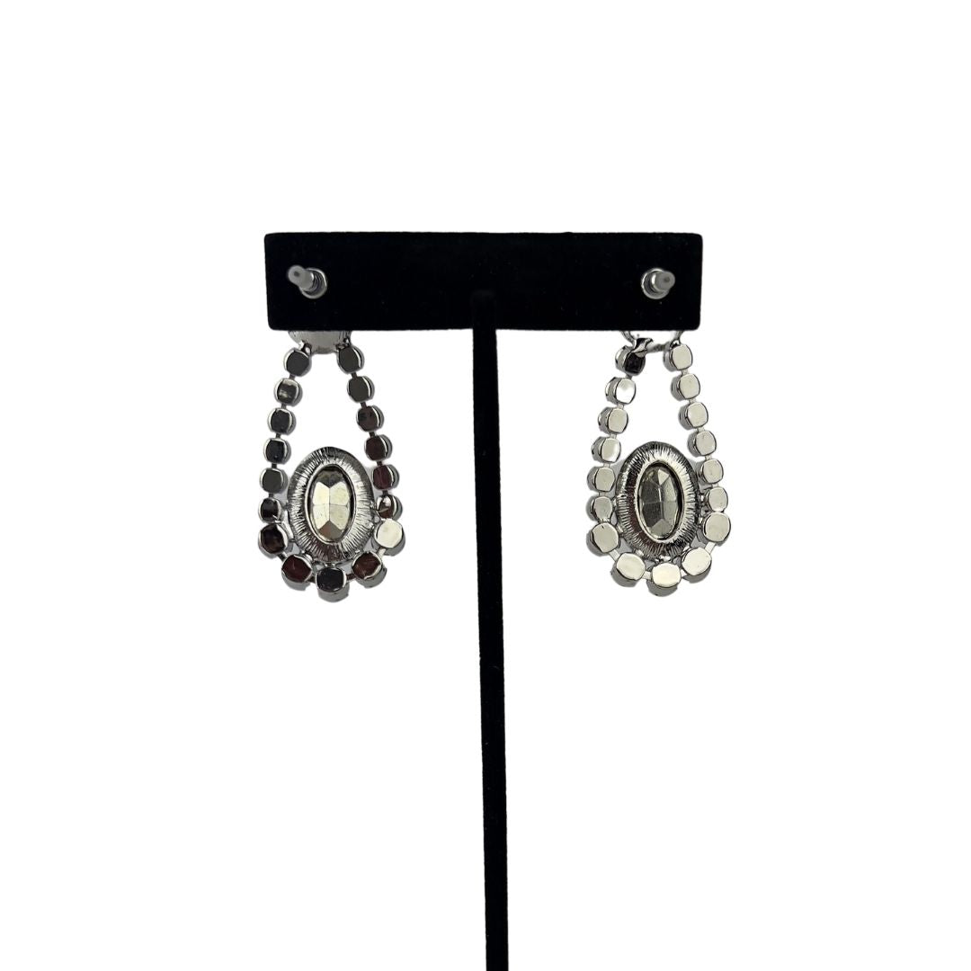 Bold pink crystals stand out against their clear counterparts. Nice drop earring in a teardrop shape. Available in doubles. 2" tall.