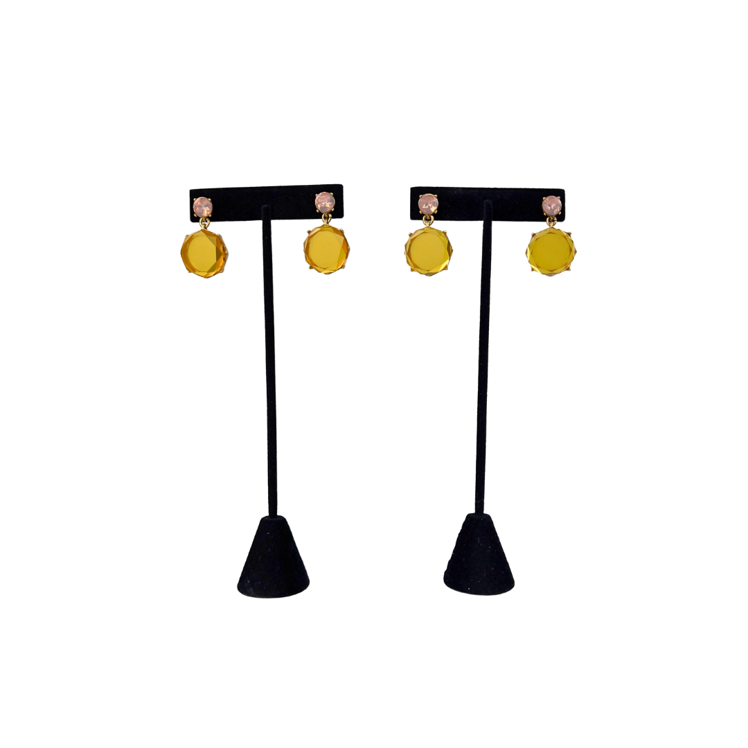 Pink Resin Studs with Clear Orange Circle Drop Earrings