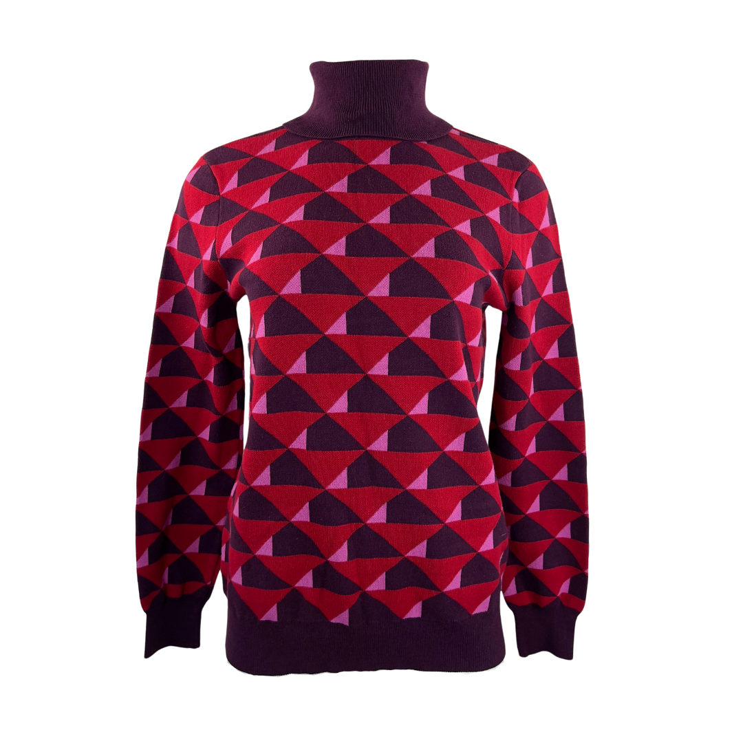 Red and Purple Triangle Print Turtleneck