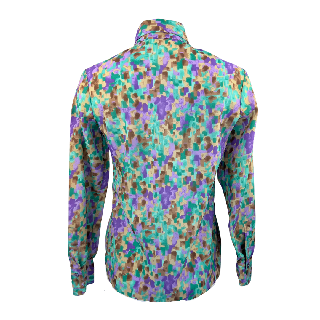 Sears Vintage Button Up with Pointy Collar in Purple, Green and Brown