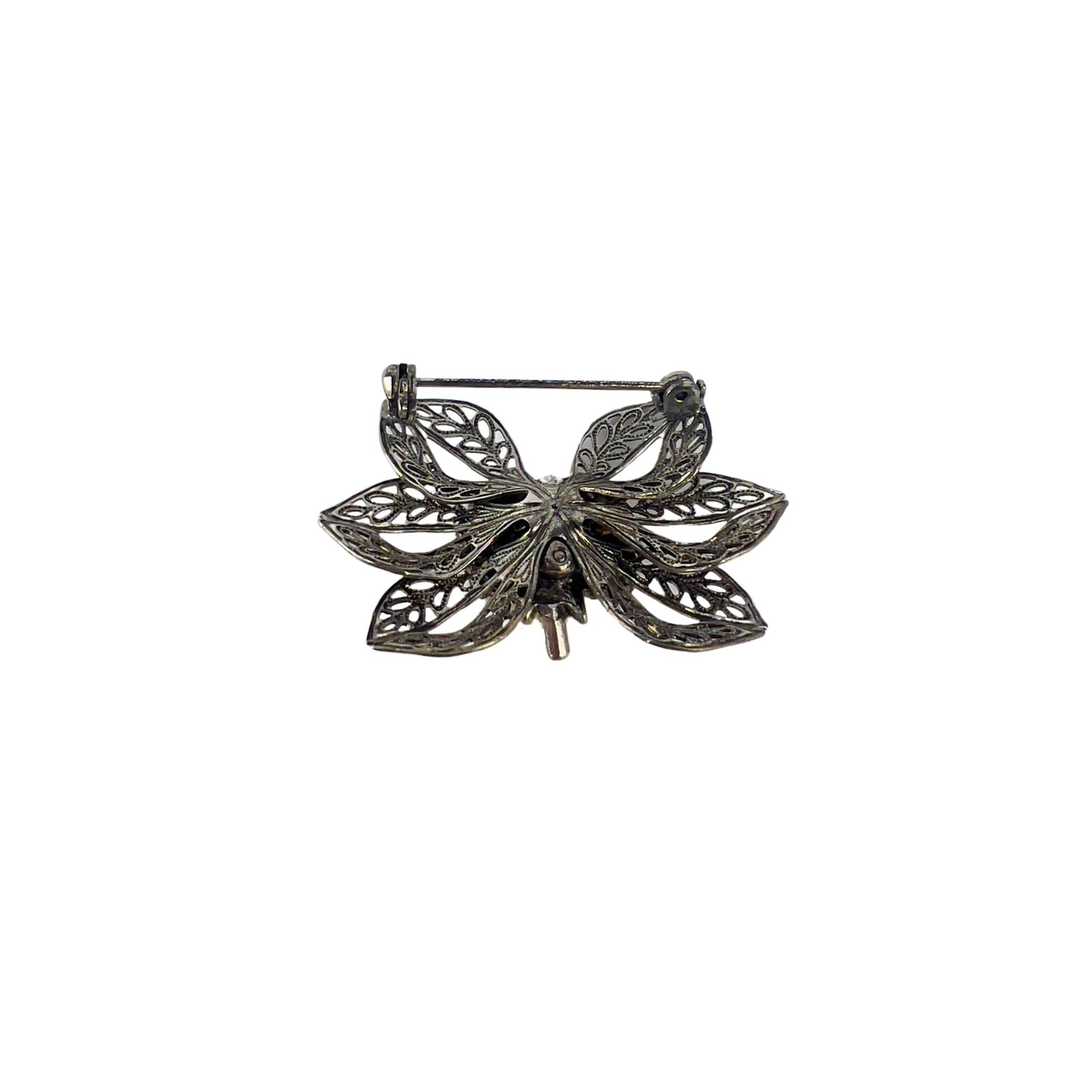 Rose made of milkbone sits in the center of gorgeous and detailed silver leaves. Brooch is 1.5" wide.