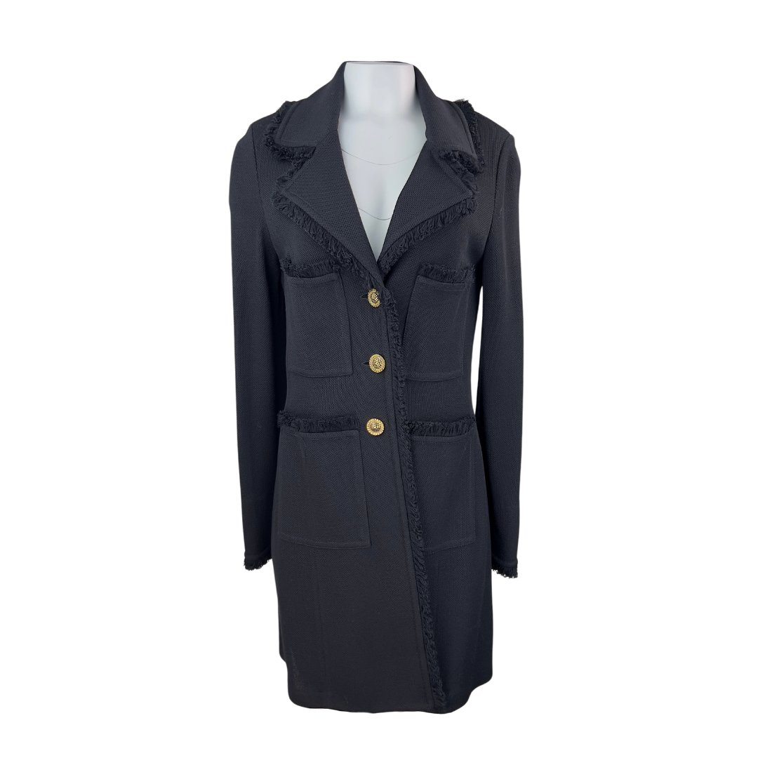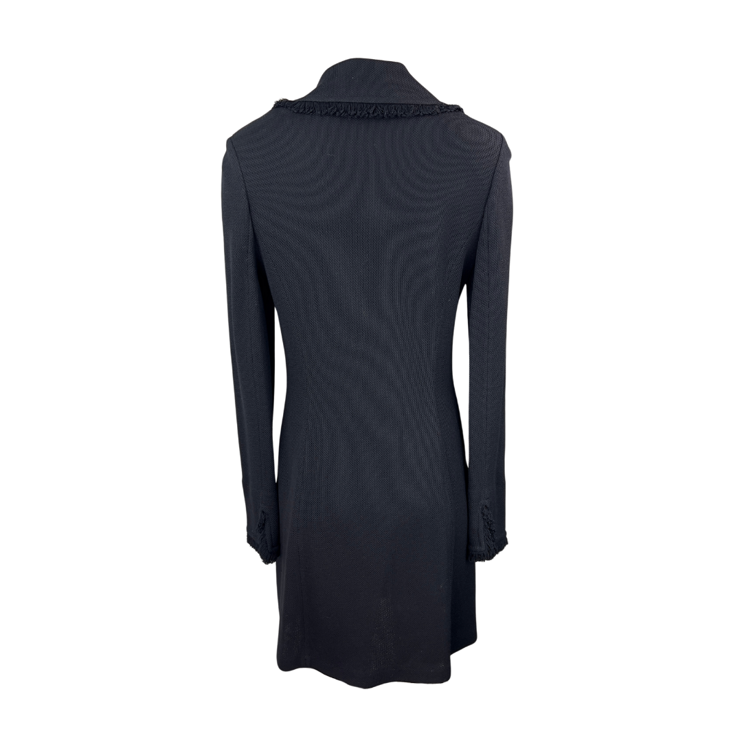 St John Black Tweed Coat with Frayed Trim on Lapel