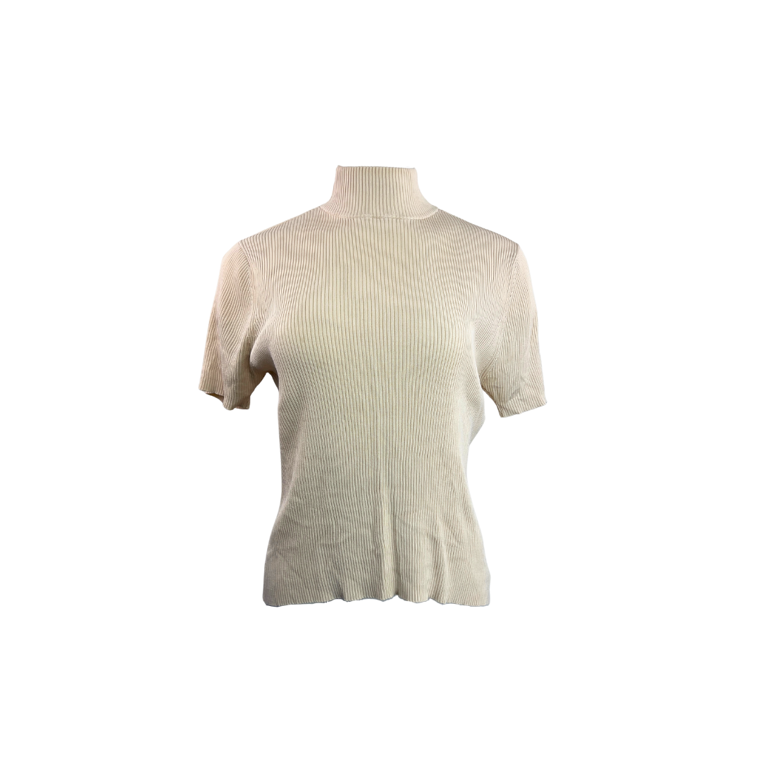 Vintage Cream Silk Ribbed Short Sleeve Mockneck
