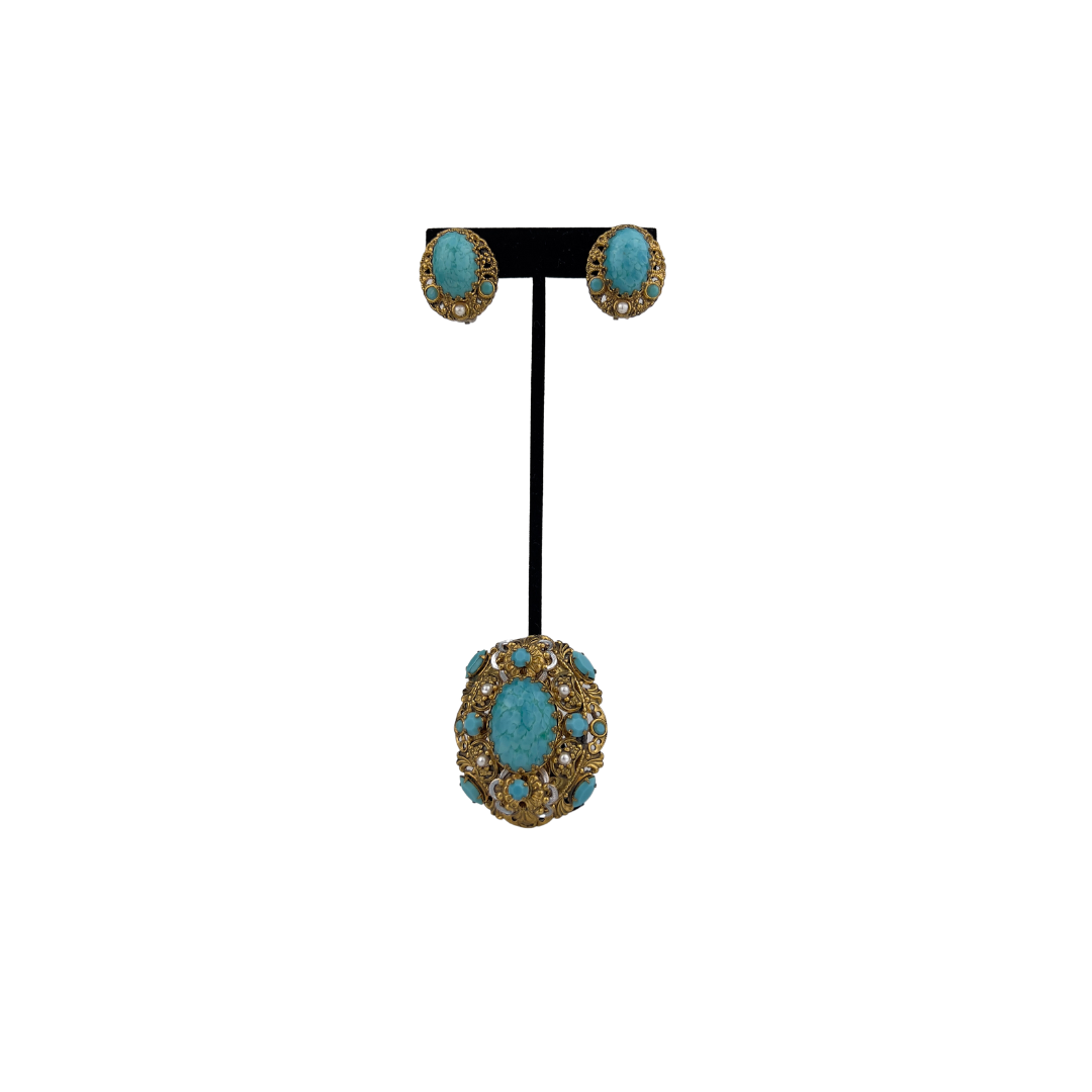 Vintage Turquoise Brooch and Earring Set